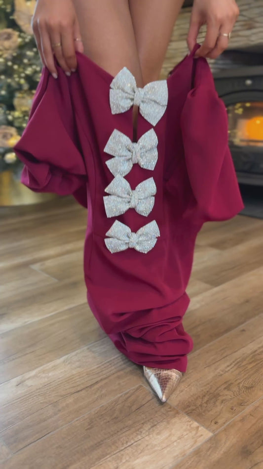 Imani Embellished Bow Dress Burgundy