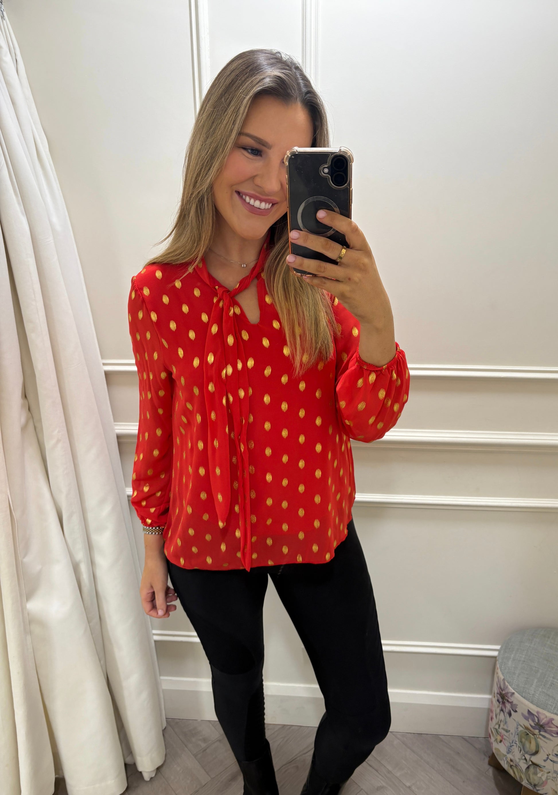 Everly Polka Dot Blouse Red